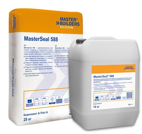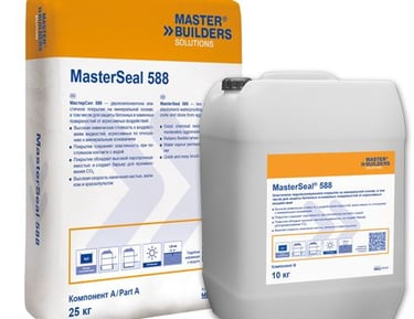 MasterSeal 588 liquid, an acrylic polymer emulsion, can be easily applied by brush or roller.